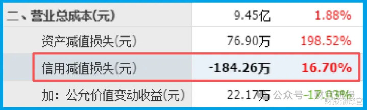 坏账准备(信用减值损失)一项显示为-184.26万元,同比增加16.70%。